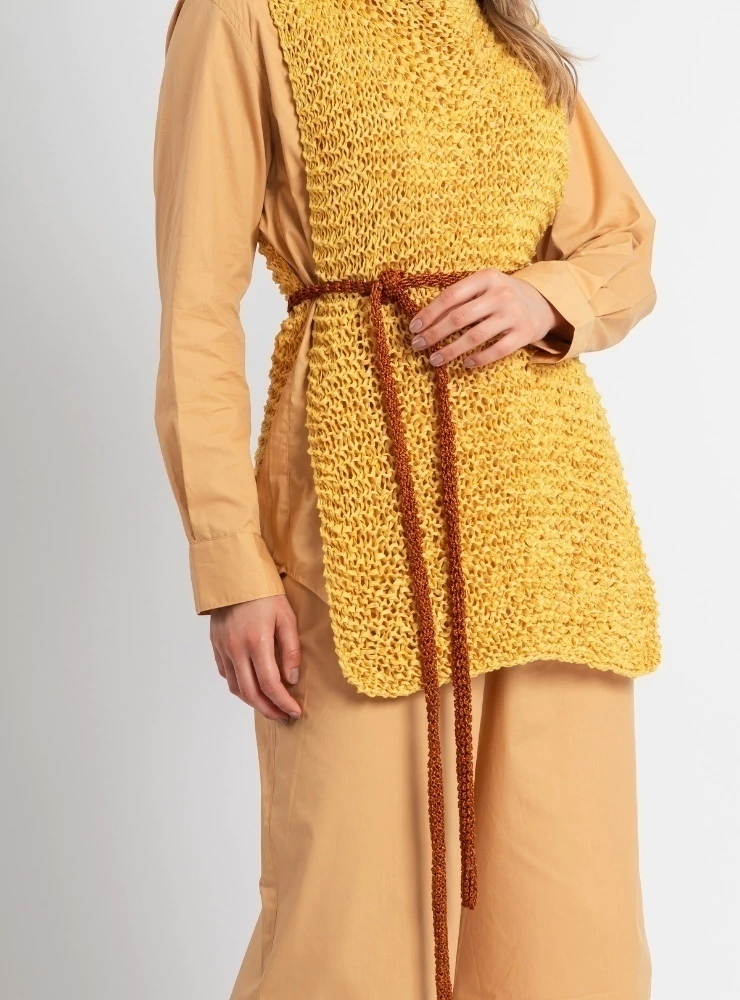 O Tricô Vic traz a riqueza de uma peça tecida ponto a ponto por mãos humanas, histórias humanas. Esse trabalho não apresenta uma definição de trabalho, ou de uso, ele é livre. Livre para ser uma blusa, uma gola, um cachecol, uma saia...